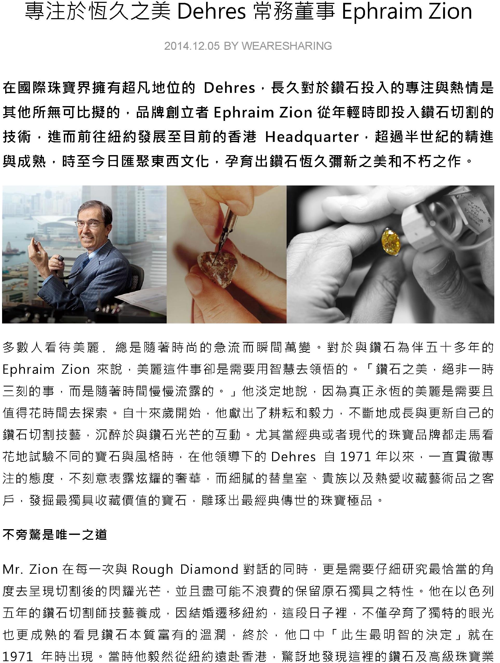 在国际珠宝界拥有超凡地位的Dehres,长久对于钻石投入的专注与热情是其他所无可比拟的,品牌创立者Ephraim Zion从年轻时即投入钻石切割的技术... 详情